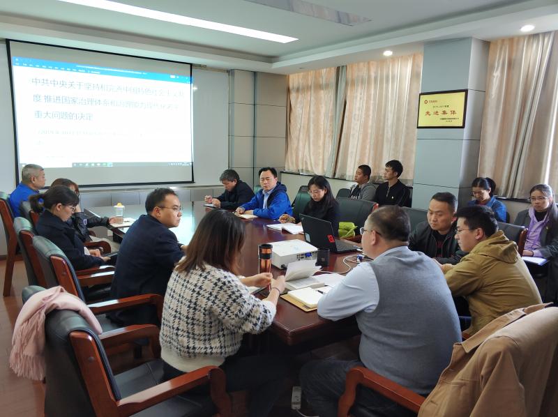 會議上,孫峻同志系統(tǒng)介紹了十九屆四中全會召開的詳細信息,帶領各位黨員重點學習《中共中央關于堅持和完善中國特色社會主義制度 推進國家治理體系和治理能力現代化若干重大問題的決定》和《習近平:關于〈中共中央關于堅持和完善中國特色社會主義制度推進國家治理體系和治理能力現代化若干重大問題的決定〉的說明》,并結合近期國內外政治經濟形勢及重大事件,詳細闡述了全會《決定》的具體內容。